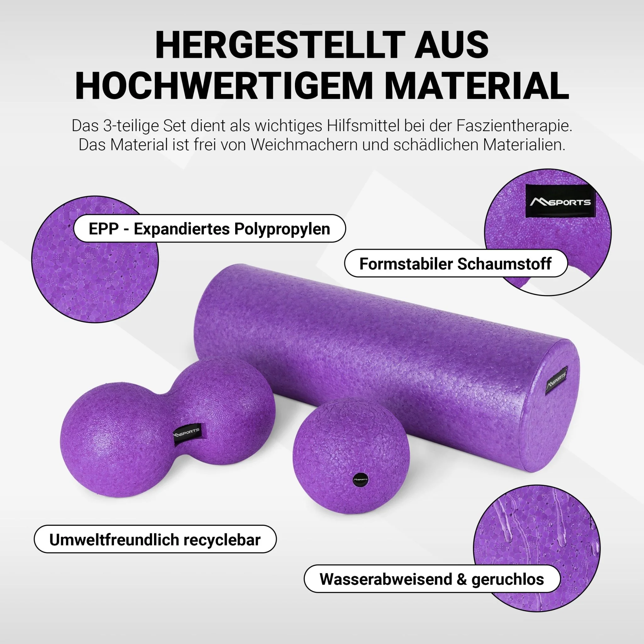 Das Faszien Set ist das ideale Trainingsgerät für eine effektive Eigenmassage. Die glatte Oberfläche eignet sich ideal zur Anwendung am gesamten Körper.