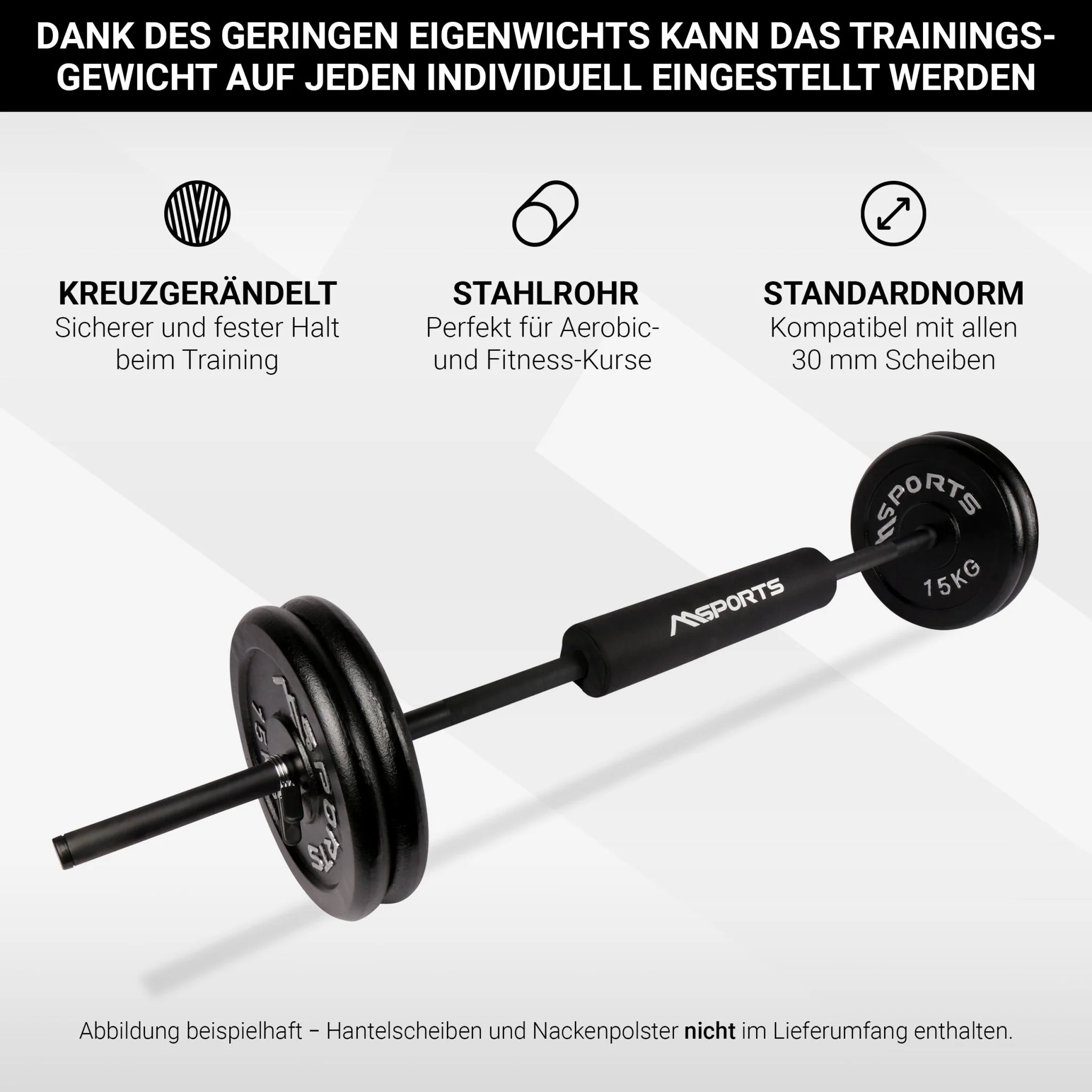 Die Langhantel verfügt über einen komfortablen, strukturierten Griff, um ein Abrutschen beim Training zu verhindern, was Ihre Sicherheit garantiert.